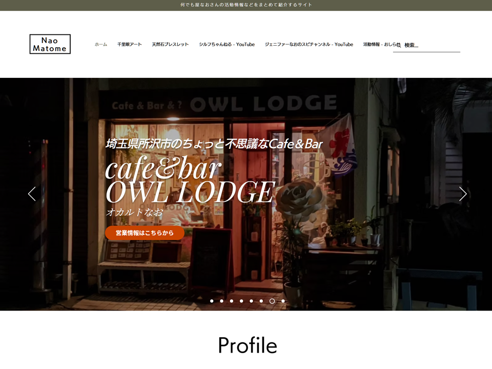 ギャラリーサイト(サンプル|Wix)Nao Matome 2025.09.14 使用サービス:Wix(クラウド型のホームページ作成サービス) クラウド型サービスは、サーバーやドメインをご自身で準備する必要がなく、契約後すぐに公開できるのが特徴です。シンプルにホームページを立ち上げたい方に向いています。※ご利用には、クライアント様名義でのサービス契約が必要となります。 なおまとめ | ホーム | Nao Matomehttps://life8connect.wixsite.com/nao-matome